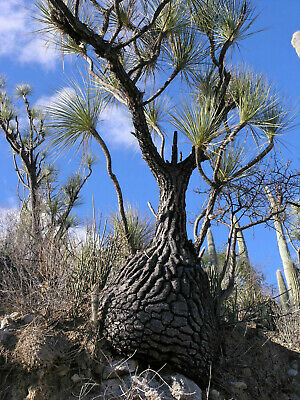 Beaucarnea hiriartiae, a caudex plant from Mexico. The caudex can reach 1.5 m in diameter, the whole plant grows 4 - 6 m high. The flowers are white to pale yellow.