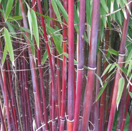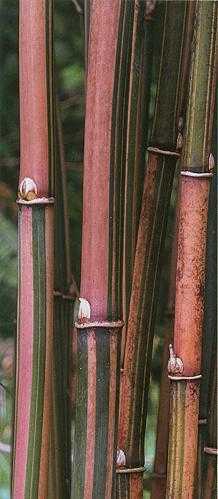Himalayacalamus Falconeri also known as candy cane bamboo is a very beautiful clumping bamboo due to its vivid, random colors: dark green striping on red and yellow canes supporting masses of small, feathery leaves.