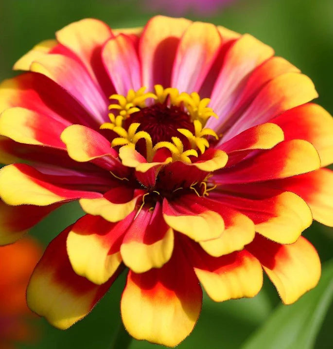 Sombrero Zinnia is an old variety of zinnia that is native to Mexico. It has bold, bi-colored petals where the inner half of the petals are red while the outer half are bright yellow. This variety is fast-growing and long-blooming. Zinnias are a "cut and come again" flower, meaning when flowers are cut they will grow back long, strong stems throughout the summer season.